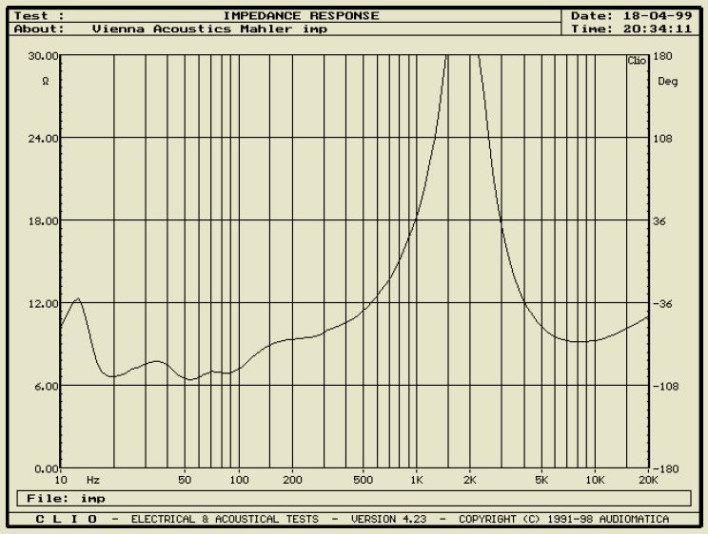 Charakterystyka impedancji Mahlerów (rys. 1) wskazuje, że w zakresie niskotonowym mamy do czynienia z czymś więcej niż tylko zjawiskami bass-reflexowymi. Zamiast dwóch wyraźnych wierzchołków mamy tylko jeden (przy około 13Hz) i dodatkowo dwa nie tyle wierzchołoki, co pagórki, jeden większy, przy około 35Hz, i drugi mniejszy, przy około 70Hz. Pierwszy z nich jest najprawdopodobniej pozostałością po oczekiwanym drugim wierzchołku, spłaszczonym przez korekcję impedancji w zwrotnicy, drugi jest ubocznym efektem działania nisko strojonego filtru dolnoprzepustowego dla głośników sub-niskotonowych.