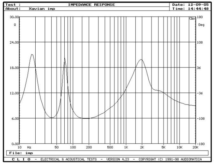 Głośnik ten jest rekomendowany do obudów bas-refleks o objętości od 10 do 20 litrów, Xavian zastosował tylko 10 litrów netto (obudowa najmniejsza w tej grupie) - a i tak osiągnął wyraźnie najniższą częstotliwość graniczną. Otwór bas-refleksu znajduje się z tyłu, co może wywołać lekki niepokój tych, którzy chcieliby ustawić monitory bardzo blisko tylnej ściany. Faktycznie, to może nie być najlepsze rozwiązanie, ale pół metra powinno już wystarczyć dla prawidłowego zachowania się basu, a ponadto takie odsunięcie od ściany zawsze jest korzystne, niezależnie od lokalizacji wylotu układu rezonansowego.