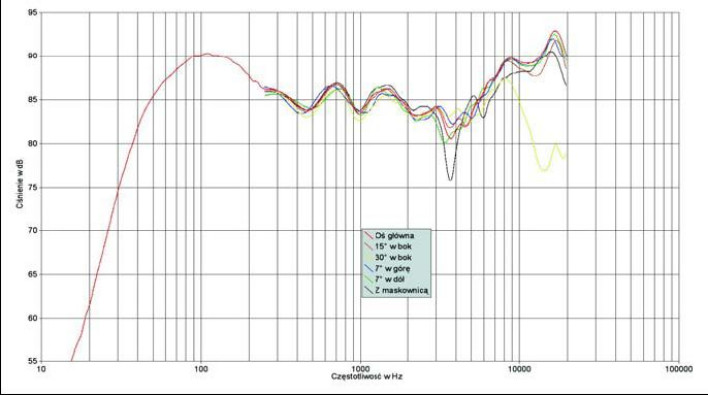 Mimo że producent sam opis poświęca kwestii odbić od bocznych ścian, związanych z charakterystykami w płaszczyźnie poziomej, to na następnych stronach chwali się właśnie charakterystykami zmierzonymi pod różnymi kątami w płaszczyźnie pionowej.