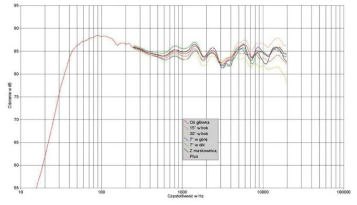 Efektywność napięciowa wciąż nie jest bardzo wysoka, ale 87 dB to co najmniej dobrze. W dodatku bas przetwarzany jest bardzo sprawnie, ma nie tylko dość wysoki poziom, ale i ładne rozciągnięcie, bez wyraźnego eksponowania wybranego podzakresu; spadek -6 dB pojawia się przy 35 Hz - wyśmienicie! Podobnie jak w przypadku Tobago, tak niski bas uzyskano, wcale nie stosując niskiego strojenia bas-refleksu - w obydwu przypadkach jest to ok. 50 Hz. W pozycji "zerowej" regulatora poziomu wysokich tonów charakterystyka lekko opada, w pozycji "plus" wydaje się całościowo lepiej zrównoważona, w obydwu przypadkach utrzymuje się w granicach +/- 2,5 dB. Na przełomie średnich i wysokich tonów widać lokalne obniżenie, ale zestrojenie układu wygląda w sumie doskonale, imponująca jest zbieżność charakterystyk dla różnych osi w płaszczyźnie pionowej wraz z niewielkim wpływem maskownicy. Ten głośnik nie powinien kaprysić przy różnym ustawieniu, choć pewna dawka eksperymentów zawsze się przyda.