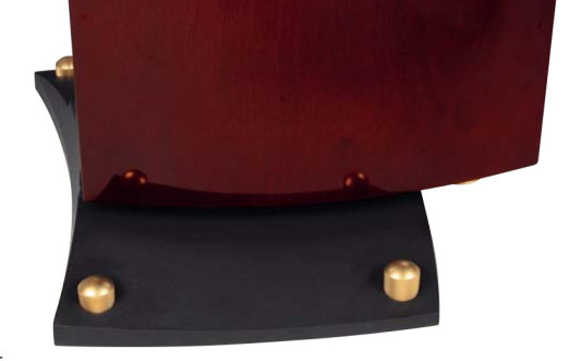 Firma nie chwali się tu żadnym patentem. Można chyba przyznać jej nagrodę za najbardziej bajerancki cokół na świecie. Połączono w nim doskonały efekt wizualny i teorię o korzyściach akustycznych płynących z takiej właśnie konstrukcji.
