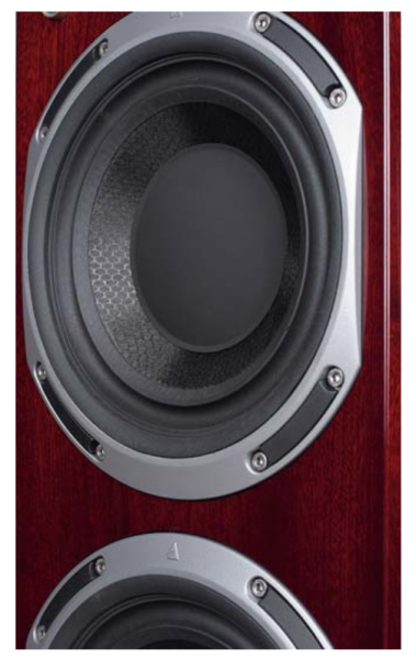 Membrany głośników niskotonowych są zupełnie inne, to przykład rozwiązań nowej generacji - główna stożkowa część membrany składa się z dwóch warstw plecionki z włókna szklanego, połączonych komórkową strukturą z... celulozy - kto więc lubi membrany celulozowe (tak jak ja), a jednocześnie docenia wysoką sztywność membran sandwiczowych, ma tutaj połączenie przyjemnego z pożytecznym.