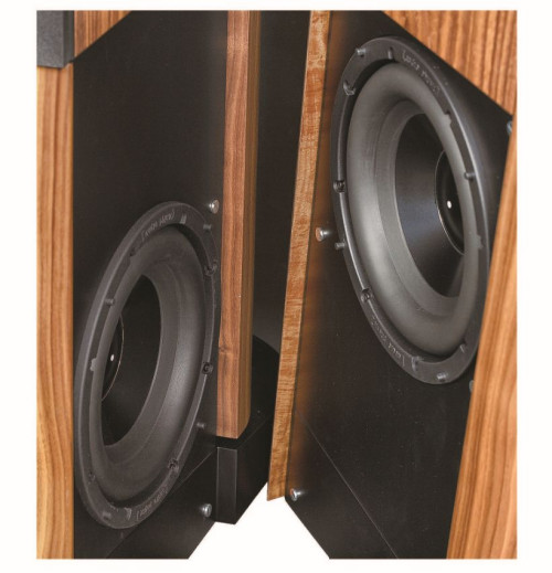 Głośnik niskotonowy na jednej z bocznych ścianek znajduje się niżej, a na przeciwległej - wyżej, aby w środku obudowy ich magnesy nie kolidowały ze sobą. Oczywiście w celu zilustrowania tej kwestii, na jednym zdjęciu musiały się pojawić dwie kolumny.