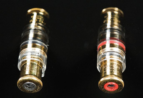 Zamontowane wprost do tylnej ścianki – luksusowe WBT. Tego typu kolumny są adresowane do wybrednych i wrażliwych na takie detale audiofilów. Tutaj nie można oszczędzać, tutaj małą inwestycją można dużo wygrać.
