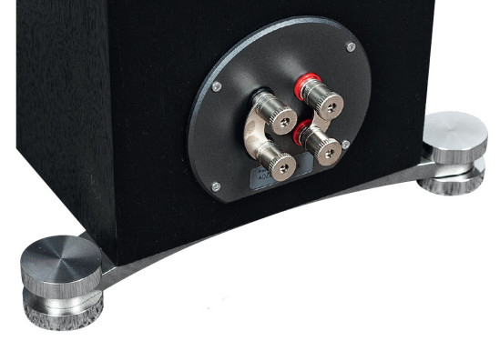 Rolę cokołu pełnią dwie masywne płozy, pozostające w naturalnym kolorze i połysku polerowanej stali – wyglądają mało subtelnie, ale doskonale pasują do całości. W sumie brawa dla projektanta za odwagę, konsekwencję i sugestywne nawiązanie do obiecywanego charakteru brzmienia.