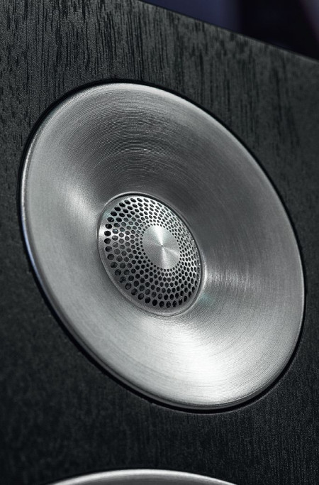 Głośnik wysokotonowy ma być dobrze słyszalny i dobrze widoczny; jego błyszczący, koncentrycznie szczotkowany, aluminiowy front jest wyprofilowany w płytką tubkę, w centrum której widać nie kopułkę, ale jej perforowaną osłonkę, pełniącą też rolę soczewki akustycznej; kopułka jest oczywiście metalowa.