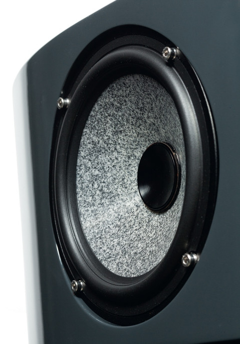 Charakterystyczny wygląd tych membran - ciemne plamki na jasnym tle - jest efektem dodatkowego zabiegu "upiększającego", a nie koniecznością uwarunkowaną technologicznie. Indywidualne maskownice głośników niskotonowego i średniotonowego są trzymane przez odpowiednio przedłużone śruby mocujące.