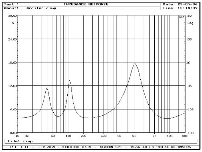 Duża Athena jest konstrukcją, którą rygorystycznie traktując należałoby uznać za znamionowo 4-omową, ale trzeba też stwierdzić, że bardziej przypomina wiele konstrukcji 6-omowych, niż 4-omowych, i jest w sumie dość wygodnym obciążeniem dla wzmacniacza. Otóż minima w całym pasmie leżą na poziomie 4 4,5Ω, a zmienność modułu jest bardzo niewielka, również w zakresie niskich częstotliwości (rys.1).