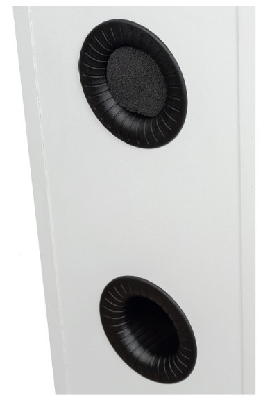 Dwa 18-cm głośniki pracują jako niskotonowe i wspólnie "napędzają" układ rezonansowy bas-refl eks, którego dwa tunele wyprowadzono na tylnej ściance; trzecia 18-ka, pracująca jako nisko-średniotonowa, ma własną komorę zamkniętą.