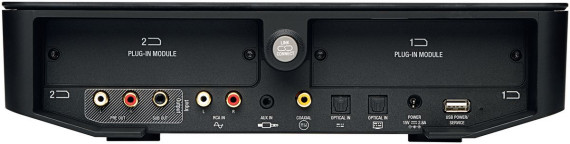 Szczególną cechą Sound Huba są dwie zatoki, przygotowane na instalację modułów, które mogą znacznie rozszerzać funkcjonalność urządzenia; nie zamienią go we wzmacniacz, ale dodadzą znane i nieznane jeszcze opcje podłączeniowe, transferowe i sterujące. Na początek przygotowano moduł BluOS kojarzący się ze "środowiskiem" firmy NAD. Za jego pomocą przewodem LAN zintegrujemy Sound Huba z innymi urządzeniami "bluosowymi".