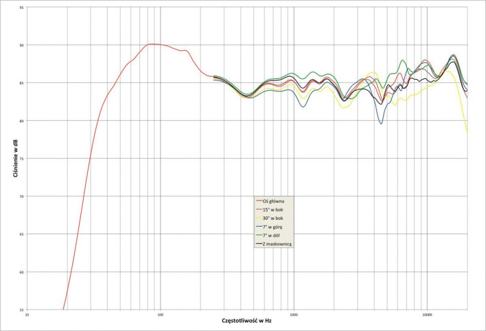 Bas jest lekko wyeksponowany, ale i wraz z tym możemy zmieścić w ścieżce +/-3 dB szerokie pasmo 40 Hz - 20 kHz (producent obiecuje...węższe – od 47 Hz). Najmocniejsza broń Elary 05 to właśnie dobre wyrównanie charakterystyki; w szerokim zakresie średnio-wysokotonowym; od 200 Hz do 6 kHz, możemy ją zmieścić nawet w ścieżce +/-2 dB, i to nie tylko na osi głównej, ale również na osiach -7° i 15°, a także z założoną maskownicą, a na osiach +7° i 30° obniżenia też są niewielkie.