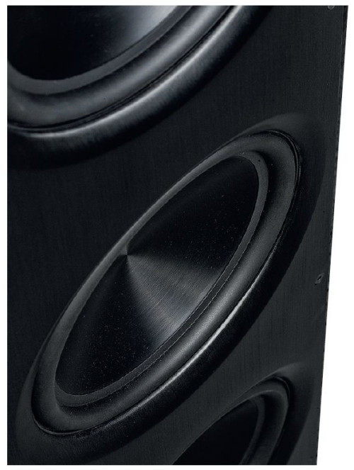 Trzy 20-ki zapowiadają dużo basowych wrażeń, ale to "tyko i aż" membrany bierne - głośniki są zainstalowane w środku obudowy, w systemie pasmowo-przepustowym, dość nietypowym właśnie przez fakt zastosowania membran biernych zamiast otworów. Membrany bierne i membrany głośników niskotonowych są aluminiowe, membrana głośnika średniotonowego - również.