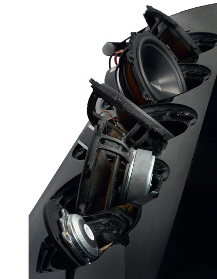 Widok imponujący nie tylko ze względu na liczbę głośników; niskotonowe i średniotonowy mają aerodynamiczne, odlewane kosze i duże układy magnetyczne. Obudowa jest solidnie wzmocniona – między głośnikami niskotonowymi umieszczono wieńce. Głośnik średniotonowy ma własną komorę, utworzoną przez przegrody ustawione pod kątem, co pozwoli zredukować jej rezonanse. Wszystkie ścianki wyłożono materiałem tłumiącym, ale "nie upakowano" nim całej przestrzeni.