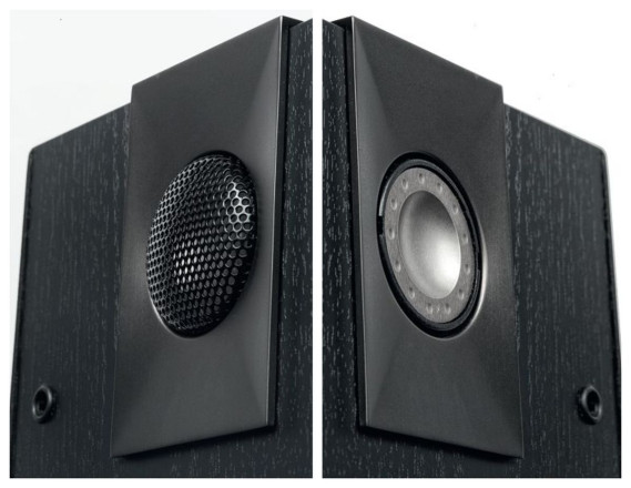 Niezależnie od głównej maskownicy, którą dla najlepszego brzmienia lepiej jest zdjąć, głośnik wysokotonowy jest chroniony dodatkowo metalową siateczką niewprowadzającą istotnych zakłóceń...jednak i użytkownik może ją zdjąć. To specjalność firmy – wklęsła kopułka wysokotonowa, tutaj w tańszej wersji aluminiowo-magnezowej, ale o właściwościach nieodległych od znacznie droższej, berylowej.