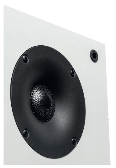 Nie jest to jednak przypadek "reprezentatywny", małe głośniki często potrafią "zejść" bardzo nisko. Głośnik wysokotonowy to 25-mm kopułka aluminiowa (PAL - Pure ALuminium) przysłonięta soczewką akustyczną przygotowaną wedle firmowej recepty i nazwaną PPA (Perforated Phase Aligning), która wygładza charakterystykę w zakresie najwyższych częstotliwości (przy okazji chroni kopułkę przed uszkodzeniem mechanicznym i jest drobną ozdobą na dość "smutnym" obliczu kolumny).