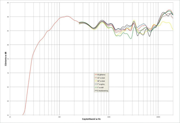Przebieg w bardzo szerokim zakresie, od 200 Hz do 10 kHz, można zmieścić w wąskiej ścieżce +/-2 dB, co wystawia tej konstrukcji bardzo dobre świadectwo, tym bardziej, że tak pożądaną sytuację obserwujemy nie tylko na osi głównej, ale też na prawie wszystkich pozostałych – z wyjątkiem osi pod kątem -7°, ale występujące na tym kierunku lekkie osłabienie w zakresie 1–2 kHz też nie powinno nas niepokoić, może brzmienie nawet lekko "wysubtelnić", wpisując się w ogólny przepis na uniknięcie agresywności poprzez cofnięcie "pół kroku" zakresu "wyższego środka" – a jest to tutaj zabieg i tak przeprowadzony znacznie lżej niż np. w Mission LX-4.