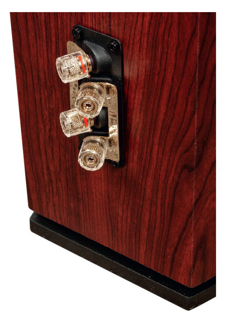 Pomiędzy cokołem (o grubości 16 mm), który ani trochę nie wystaje poza obrys obudowy, a właściwą "skrzynką" znajduje się 7-mm szczelina. Tak niewielka, że uznałbym ją raczej za wzorniczy "smaczek", jednak jest to wylot z tunelu bas-refleksu.
