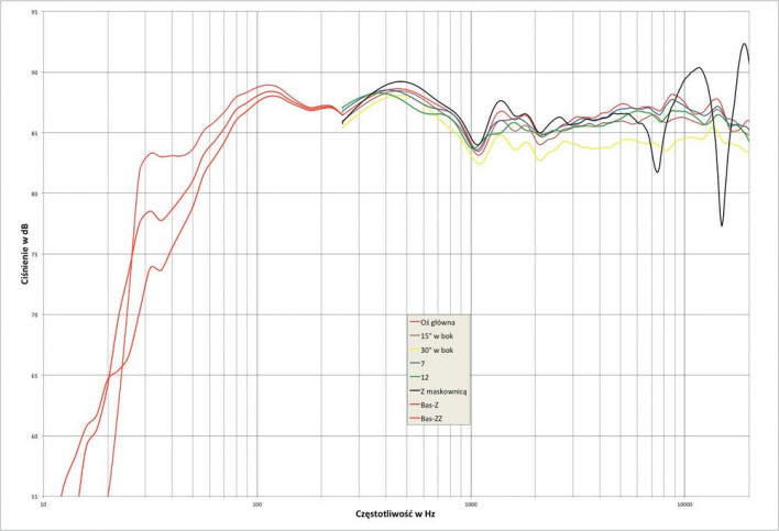 Wyśmienite wyrównanie wysokich tonów jest osiągnięciem najnowszych wersji Uni-Q - wcześniej wprowadzały one wąskopasmowe nierównomierności w okolicach 10 Hz, wynikające z odbić od krawędzi wokół wysokotonowej kopułki. Najwięcej "miesza" maskownica - wprowadza gwałtowne nierównomierności w zakresie wysokich częstotliwości.
