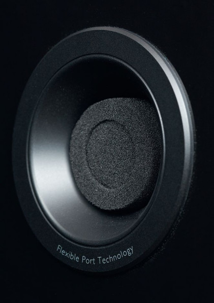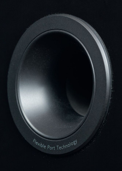 Przesunięcie z osi symetrii otworów bas-refleks pozwala zmniejszyć transmisję fal stojących z wnętrza obudowy. Głośniki niskotonowe pracują parami w dwóch komorach.