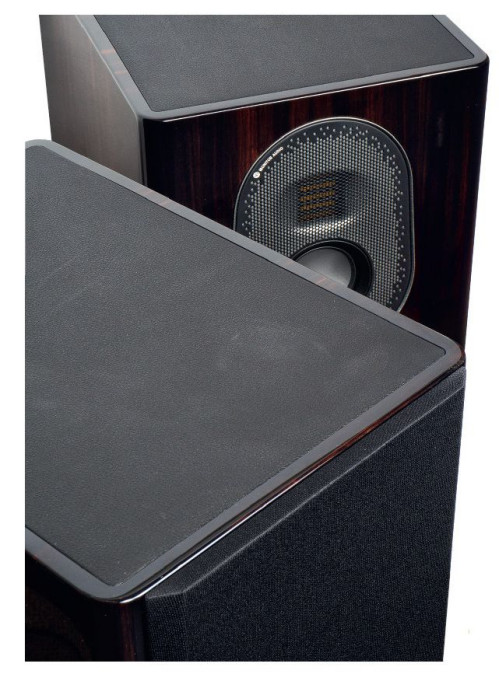 Membrana przetwornika wysokotonowego znajduje się za podwójną (a nawet potrójną) gardą - tuż przed nią poprzeczki tworzące szczeliny (typowe dla przetworników AMT), a na wierzchu metalowa siatka. Do tego można jeszcze założyć maskownicę przykrywającą cały front...