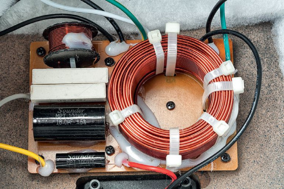 Zgodnie z informacjami producenta, zwrotnica jest bardzo prosta – dwie cewki i dwa kondensatory w układzie trójdrożnym oznaczają zestaw filtrów 1. rzędu.