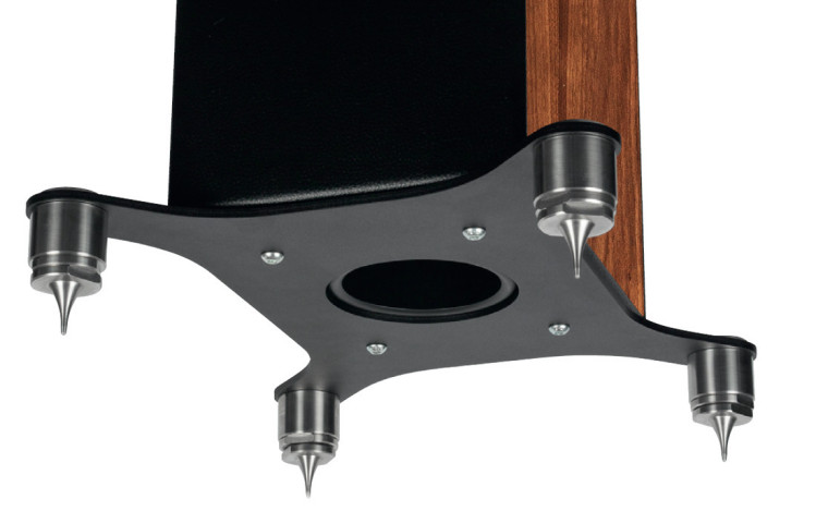 Takiego solidnego podparcia nie powstydziłaby się znacznie większa kolumna, to wręcz przesada, ale robi wrażenie i na pewno nie zaszkodzi. Cokoły są dostarczane w oddzielnych opakowaniach, poza pudłem z właściwymi kolumnami, i dwa razy pytałem dystrybutora, czy jest to wyposażenie standardowe, a nie opcjonalne (za dopłatą); ostatecznie można by wkręcać mniejsze kolce bezpośrednio w dno obudowy (tam, gdzie przykręca się cokół), ale nie ma co kombinować – supercokoły z superkolcami dostajemy w komplecie.