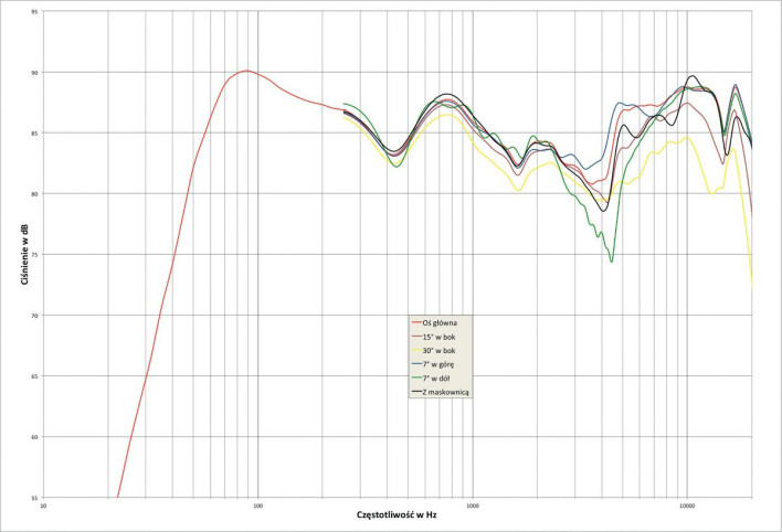 Z kolei wyeksponowanie skrajów pasma, chociaż może uchodzić za komercyjne "efekciarstwo", też jest dobrze przyjmowane – wynika to z krzywej czułości naszego słuchu. W ścieżce +/-2,5 dB, na osi +7º, mieścimy się z zakresem 200 Hz – 8 kHz, a więc z ponad czterema oktawami.
