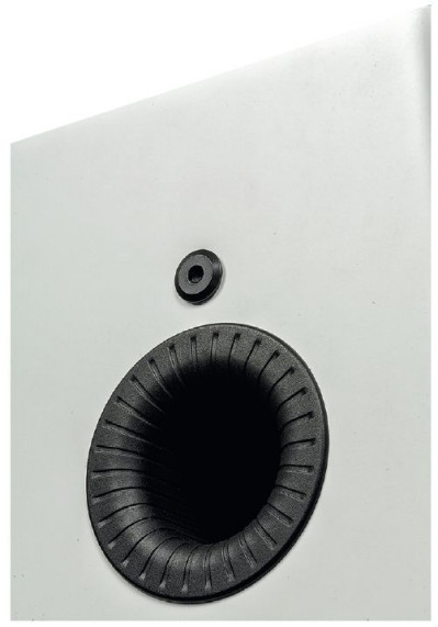 I podobnie jak w 705-kach Bowersa, bas-refleks wyprowadzono z tyłu, dodając w wyposażeniu piankowe zatyczki, którymi możemy obudowę zamknąć, aby zmniejszyć poziom basu, a więc skorygować jego nadwyżkę, jaka się pojawi, gdy głośniki umieścimy blisko ściany.