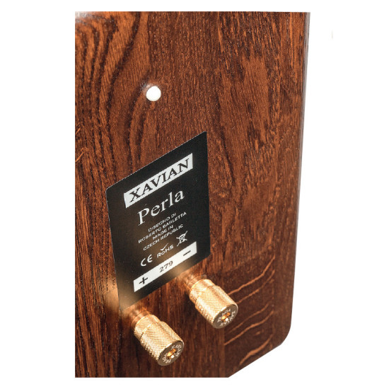 Układ głośnikowy monitorów Xavian Perla Esclusiva wygląda bardzo podobnie jak w pierwszej Perle, ewentualne zmiany są ukryte w elementach wewnętrznych. To układ konwencjonalny z jednocalową, tekstylną kopułką wysokotonową i 15-cm nisko-średniotonowym z membraną polipropylenową (sama membrana ma średnicę 10 cm) i miękką nakładkę przeciwpyłową. Zwrotnica jest dość egzotyczna bowiem składa się z"filtrów szeregowych.