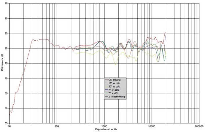 Zmierzone w naszym laboratorium małe nierównomierności charakterystyki przetwarzania, będące najpewniej efektem interferencji między wysokotonowymi, pojawiają się pod kątami +/- 7° w płaszczyźnie pionowej w zakresie powyżej 10 kHz; kąt ten jest w gruncie rzeczy duży, gdy weźmie się pod uwagę, że zalecana odległość między słuchaczem a Geithain RL800K wynosi od 3 do 8 m, więc nie powinno być problemów w praktyce.
