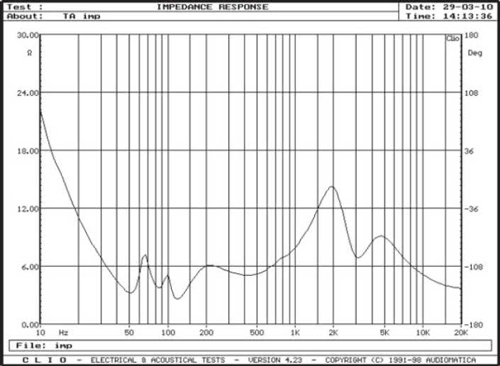 T+A CRITERION TS300 takiego warunku nie spełnia, jego labirynt ma przekrój ponad dwa razy mniejszy od powyżej postulowanego i nawet trudno się temu dziwić - dwa razy większy przekrój przy takiej długości oznaczałby przecież obudowę o dwa razy większej objętości…