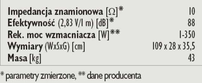 Trochę mnie rażą firmowe przechwałki - sporo w nich niekonsekwencji i dezynwoltury, charakterystyka nie osiąga wysokich not za zrównoważenie (a to mimo wszystko wciąż jedno z podstawowych kryteriów oceny, przynajmniej dla większości konstruktorów i użytkowników), jednak samo brzmienie dobrze broni wybranej koncepcji, stanowiąc nie tylko odważną, ale i ciekawą, pokazującą utracone gdzie indziej elementy, alternatywę dla kolumn "normalnych".