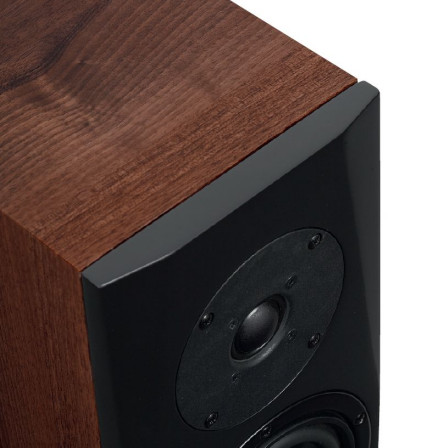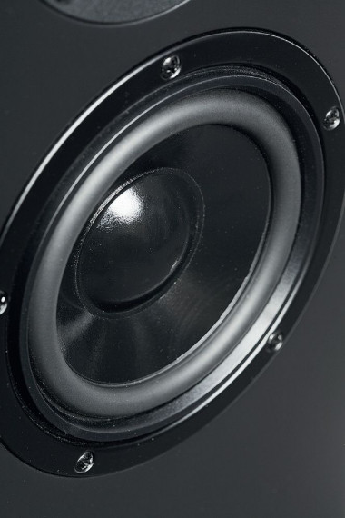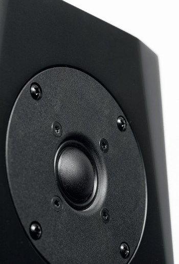 - Po drugie, ścięciami frontu (zawsze lakierowanego na czarno), mającymi korzystny wpływ na charakterystykę w zakresie wysokich częstotliwości. Dotyczy to więc tylko ścięć na górze, ścięcia w dolnej części obudowy mają już znaczenie wyłącznie wizualne.