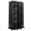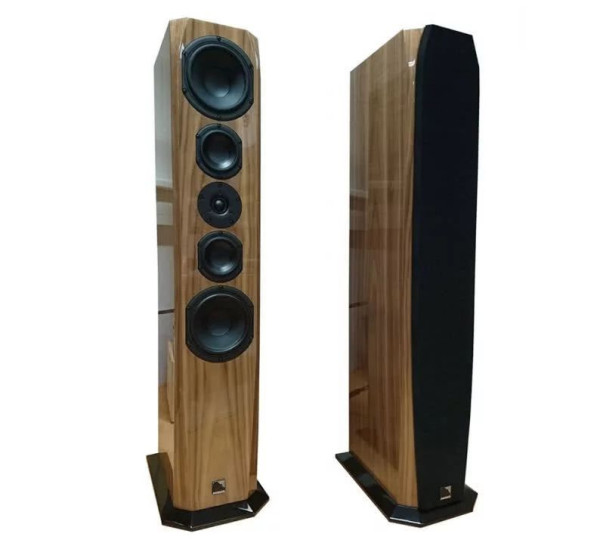 Front ma wyraźne ścięcia przy głośnikach niskotonowych, wizualnie wyszczuplające sylwetkę, ale nie będą one miały dużego wpływu na charakterystyki - dla lepszych rezultatów akustycznych bardziej przydałyby się w okolicy sekcji średnio-wysokotonowej, tak jak w mniejszych modelach, ale konfiguracja symetryczna utrudnia takie zabiegi (chociaż nie uniemożliwia).