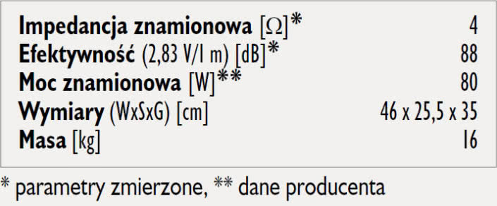 Wypukłość boków, wraz ze znaczną wysokością i głębokością, determinuje w tym przypadku znacznie większą objętość niż w typowych monitorach z 18-cm głośnikiem - wynosi ona ponad 20 litrów, a to już tworzy warunki do dobrego rozciągnięcia niskich częstotliwości.
