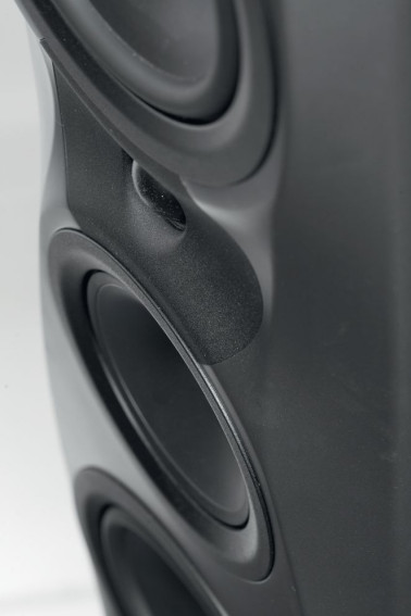 Wskazówką, że tak nie jest, są różne średnice przetworników poniżej i powyżej wysokotonowego (nawet bez względu na sposób filtrowania, a trudno się spodziewać, aby było takie samo), lecz złudzenie ich podobieństwa i symetrii, czy choćby jakiegoś szczególnego współdziałania, do którego nie włącza się głośnik umieszczony najniżej, powoduje głębokie wyprofilowanie wokół wysokotonowego, wizualnie integrujące sąsiednie przetworniki łukami wycięć w jego froncie, w które wchodzą ich pierścienie.
