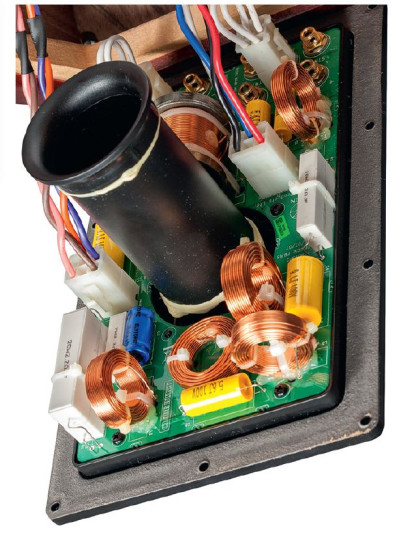 Można przypuszczać, że w zwrotnicy zastosowano dodatkowe filtry linearyzujące, chociaż niskie wierzchołki w zakresie niskich częstotliwości wynikają z uśrednienia się impedancji sekcji zamkniętej i bas-refleksu. Ok. 4 Ω na skraju pasma sugeruje połączenie równoległe dwóch przetworników 8-omowych (niskotonowego i nisko-średniotonowego), skąd więc 2,5-omowe minimum przy 130 Hz?