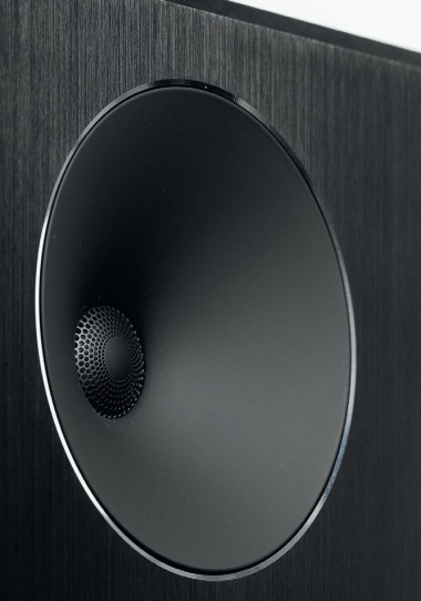 25-mm kopułka wysokotonowa jest wykonana z podobnego, ale nie dokładnie takiego samego stopu, jest oczywiście cieńsza i ma dodaną warstwę ceramiczną ("Al-Mac"). Jest także zasłonięta przez siateczkę "soczewki fazowej", co w głośnikach wysokotonowych (z metalowymi kopułkami) jest częściej spotykane i rzeczywiście zmienia charakterystyki na skraju pasma. Jest także otoczona wyprofilowaniem dużego falowodu (o całkowitej średnicy 14 cm), którego zadaniem jest regulacja charakterystyk kierunkowych, zwłaszcza w niższym podzakresie.