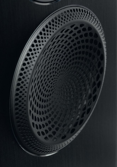Głośnik średniotonowy jest zasłonięty przez oryginalny grill. Paradigm przypisuje temu elementowi rolę akustyczną – "soczewki fazowej" (Perforated Phase-Aligning Lens) - ważny jest też czynnik estetyczny i identyfikacyjny, integrujący różne serie Paradigma (znajduje się również w tańszej Premiere).