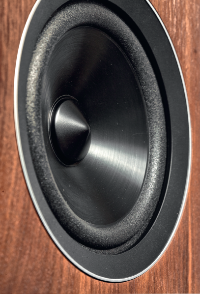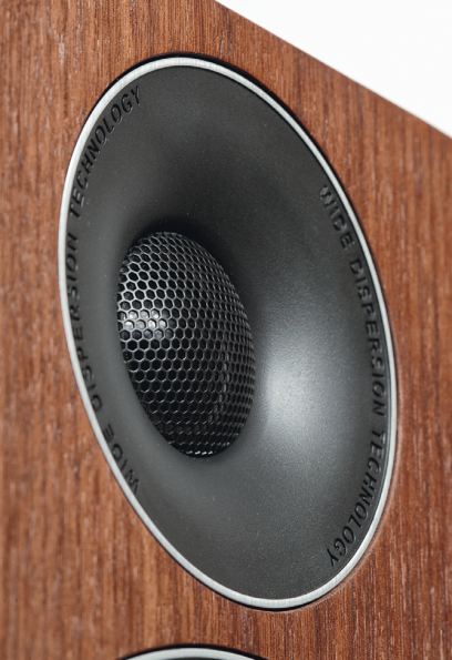Subtelnie błyszczą srebrne krawędzie pierścieni, podobnie dokończono falowód (krótką tubkę) zainstalowany przed przetwornikiem wysokotonowym – z 28-mm aluminiową kopułką chronioną przez siateczkę.