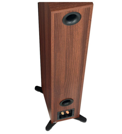 Wspominamy o tym często (a w tym teście za każdym razem…), jednak producenci realizują to rzadko, stosując z różnych przyczyn wspólną komorę. Tym razem jednak aż się prosi – obudowa jest wyjątkowo wysoka, ustawienie głośników nie utrudnia zadania (uwzględniając małą komorę dla średniotonowego, należałoby wstawić pomiędzy głośniki przegrodę opadającą ku tyłowi, aby stworzyć dwie jednakowe), wreszcie że tak właśnie uczyniono, podpowiadają dwa otwory bas-refleks umieszczone w dużej odległości od siebie. Podpowiedź ta okazuje się jednak zwodnicza, bowiem komora znowu jest jedna…
