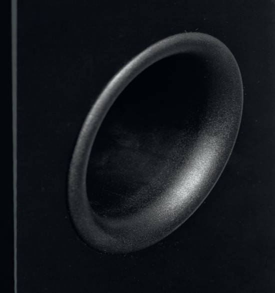 Głośnik średniotonowy jest zasłonięty perforowanym talerzem, mającym pełnić rolę soczewki akustycznej, nazwanej przez producenta PPA ("Perforated Phase-Aligning").
