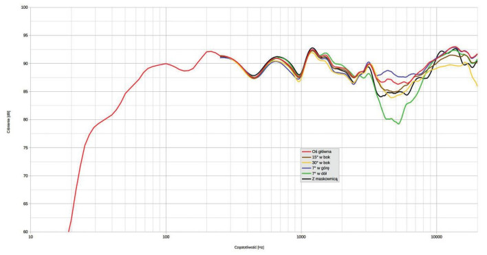 Takie nowoczesne teorie Francuzi często ignorują czasami z dobrym, czasami ze złym skutkiem. Charakterystyka w zakresie najwyższych częstotliwości wygląda bardzo ładnie, co świadczy już o właściwościach i jakości samego przetwornika tubowego. Dochodzi do20 kHz praktycznie bez spadku, rozpraszanie jest szerokie, dopiero pod kątem 30O odstaje wyraźniej.