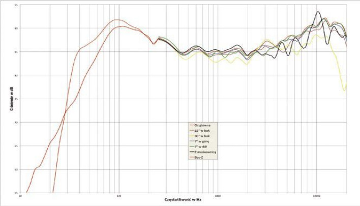 Wyprofiowana w lekki łuk, a jednocześnie niemal doskonale wygładzona, charakterystyka przetwarzania jest znana z dawnych kolumn Energy; najwyraźniej ten styl i te umiejętności wciąż są w fi rmie szanowane. Co więcej, prawie wszystkie krzywe - poza zdjętą pod największym kątem 30O i z maskownicą - leżą bardzo blisko siebie, więc fi rmowe zapowiedzi osiągnięcia dobrego rozpraszania znalazły potwierdzenie. Jesteśmy "skazani" na wyeksponowanie skrajów pasma, ale patrząc na fi nezję, z jaką owo wyeksponowanie zostało przygotowane, trudno wątpić, że był to zamiar konstruktora. Na tym tle widać wyraźnie nierównomierności wprowadzane przez maskownicę - zdecydowanie należy ją zdjąć.