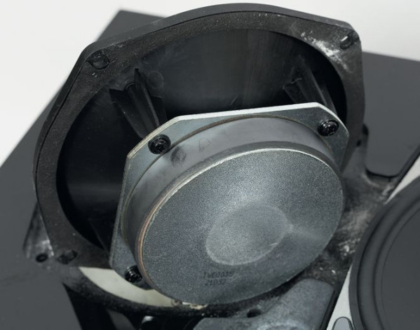 Średniotonowy ma kosz izolowany podobnie jak niskotonowe, ale wysokotonowy nie jest w żaden sposób odsprzęgany – może producent doszedł do wniosku, że skoro zabezpieczył front przed wibracjami od niskotonowych i średniotonowego, to jest on już bezpieczną, spokojną platformą dla wysokotonowego.