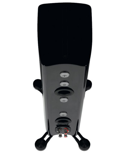 Na tylnej ściance oprócz gniazda przyłączeniowego i czterech śrub mocujących są jeszcze dwa otwory bas-refleks rozmieszczone tak, iż można by sądzić, że zostały wyprowadzone z oddzielnych komór głośników niskotonowych – przy takim rozłożeniu wszystkich elementów widocznych z zewnątrz wystarczyłoby w środku dodać przegrodę ustawioną pod niewielkim kątem, aby podzielić obudowę na dwie połowy.