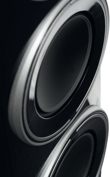 Firma lubi też małe średniotonowe, ten w serii Platinum nie jest tak mikry, jak w serii Gold czy Silver, ale wyraźnie mniejszy od 18-cm niskotonowych. Jego membrana ma średnicę 8 cm, typowego kosza nie widać, bo jest przykryty panelem obejmującym równocześnie wysokotonowy, ale można go oszacować na 12 cm.