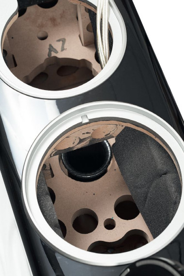 Komora jest jednak wspólna, na skutek czego zamykanie jednego z otworów zmienia strojenie całego układu (obniża częstotliwość rezonansową); na wyposażeniu każdej kolumny są dwie zatyczki pozwalające też całkowicie zamknąć obudowę, co jednak według naszych pomiarów może być rekomendowane tylko w skrajnych sytuacjach.