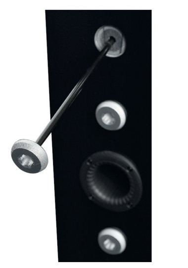 W czasie testu na to rozwiązanie nie narzekaliśmy, bowiem ułatwiło nam wykręcenie głośników. W komplecie znajduje się specjalny klucz z przyjemną drewnianą rączką służący do dokręcenia śrub, gdyby z czasem (podczas normalnego użytkowania) lub podczas transportu uległy one poluzowaniu.