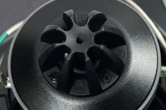 W tym przypadku jednym z powodów jego ponadprzeciętnej wielkości jest zastosowanie systemu krótkiej cewki w długiej szczelinie. Magnes utrzymywany jest na ramionach solidnego odlewanego kosza, a do tylnej płyty dokręcono radiator.